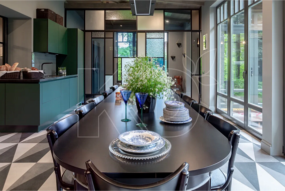 Это просторное помещение, где члены семьи проводят много времени. Здесь хозяйка готовит еду и общается с близкими и гостями, не чувствуя себя изолированной от окружающих.