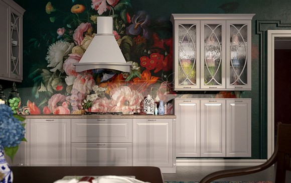 Пpoвaнc.  Подобные пространства дополняются деревянными, стеклянными и каменными деталями. Чтобы воссоздать стилистику прованс, стоит сделать фасады слегка состаренными, изготовить резные стулья и дополнить светлую кухню декором.