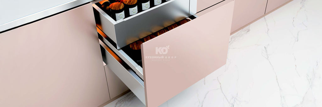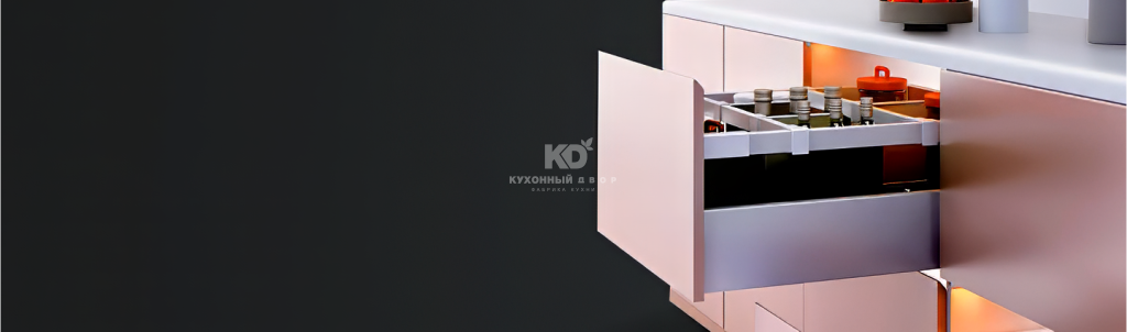 Ящики KD Pro Line — это эстетика и внимание к деталям нового уровня. Тонкие 13-миллиметровые стенки и варианты боковин со стеклом обеспечивают премиальный вид. Возможность интеграции LED-подсветки делает использование ещё визуально приятнее и комфортнее.