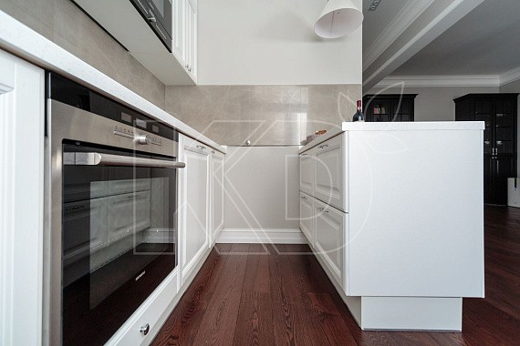 Получить максимум пользы на классической кухне с барной стойкой помогут держатели для посуды, шейкер, соковыжималка и другие бытовые приборы.
