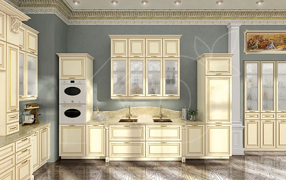 Кроме кухонь, представленных в каталоге, производитель может изготовить гарнитур ванильного цвета на заказ по созданному с клиентом дизайн-проекту.