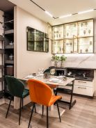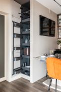 «Ханна Натив» выполнена «под потолок», имеет большое количество открытых и закрытых зон, а также композицию стильных застеклённых шкафов. Эти шкафы тоже необычны – в них нет задней стенки. Такое решение сделало интерьеры ещё более эффектными, ведь мраморный рисунок стены виден сквозь стёкла!